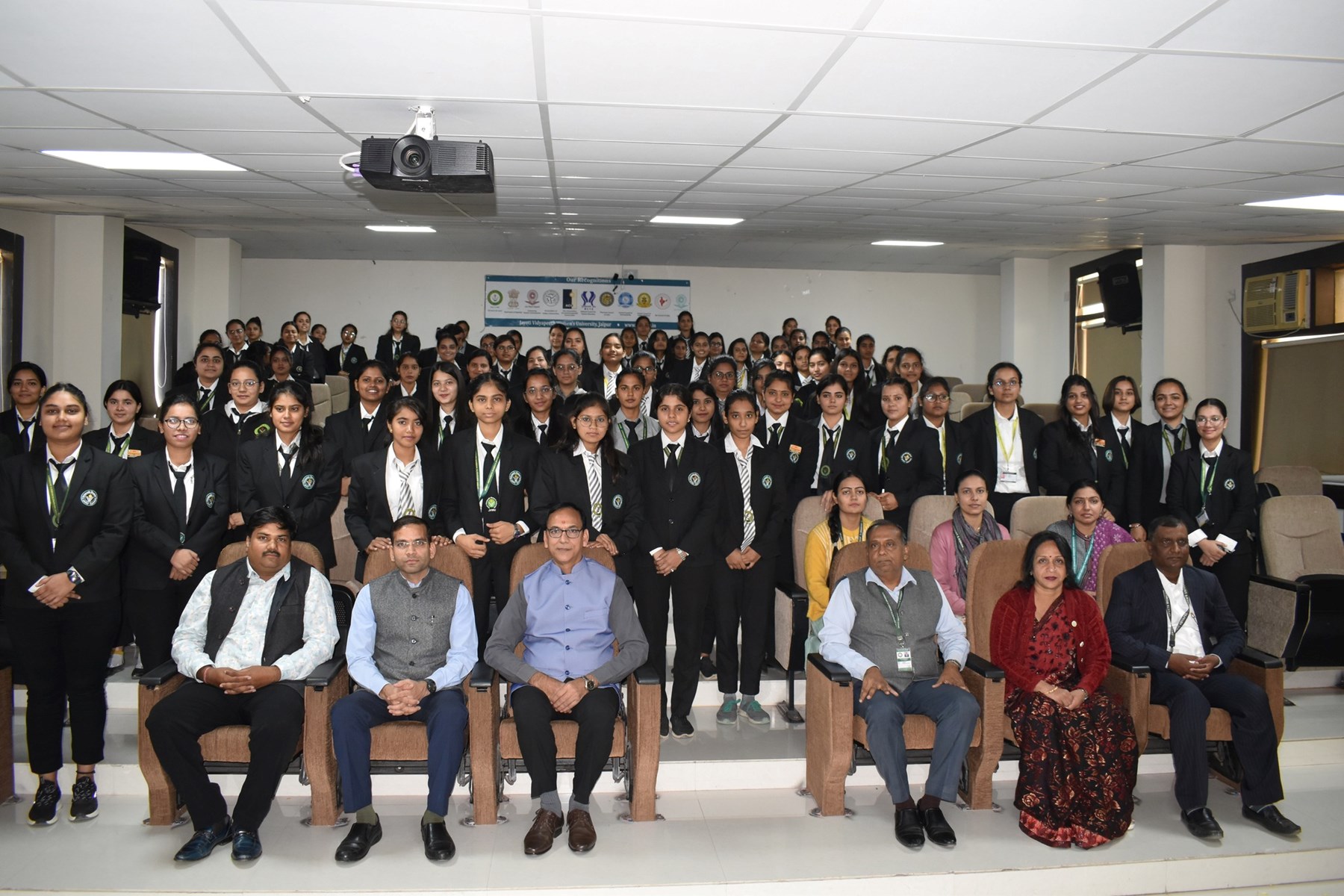 After inaugurating the program, bouquets & Mementos were presented to the Guests as a token of respect. Thereafter, Pro. Dr. Bina Dewan in her welcome address, briefly outlined the significance of the day and showed her respect and gratitude to Bharat Ratna, Dr. B.R. R. Ambedkar. Also, President I/C Prof. (Dr.) Pramod K Raghav addressed students and motivate them to make their career as a legal professional in different roles.