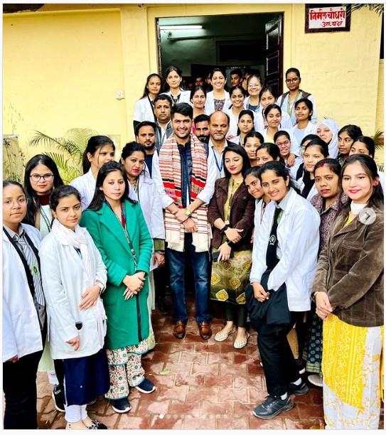 Nirmal Choudhary thanked Jayoti Vidyapeeth Women’s University for organizing free Health Care Camp and said such camps should continue to be held regularly to ensure that community members have ongoing access to preventative health services. In this free medical consultation camp, Ophthalmologist, Ear, Nose, Throat Specialist, Gynaecologist, Homeopathy Specialist, Ayurveda Specialist, Yoga & Naturopathy Specialist, Physiotherapist (Dr.Meenakshi, Dr.Suman, Dr.Sonali, Dr. .Mukta, Dr.Manoj Gaur, Dr.Triveni, Dr.Ekta) as well as medical students provided their services and all tests (blood group, blood pressure, sugar) were provided free of cost. The people who attended said that they were benefited by the facilities provided in the free medical consultation camp. Medical Camp is an opportunity for the Social Work students to have a better experience of community life & improve their professional skills by organizing need-based programmes & awareness campaigns with the support and collaboration of local people. It also provides ample opportunity for students to learn the importance of adjustment & coordination in life.