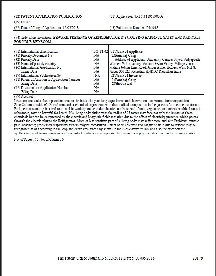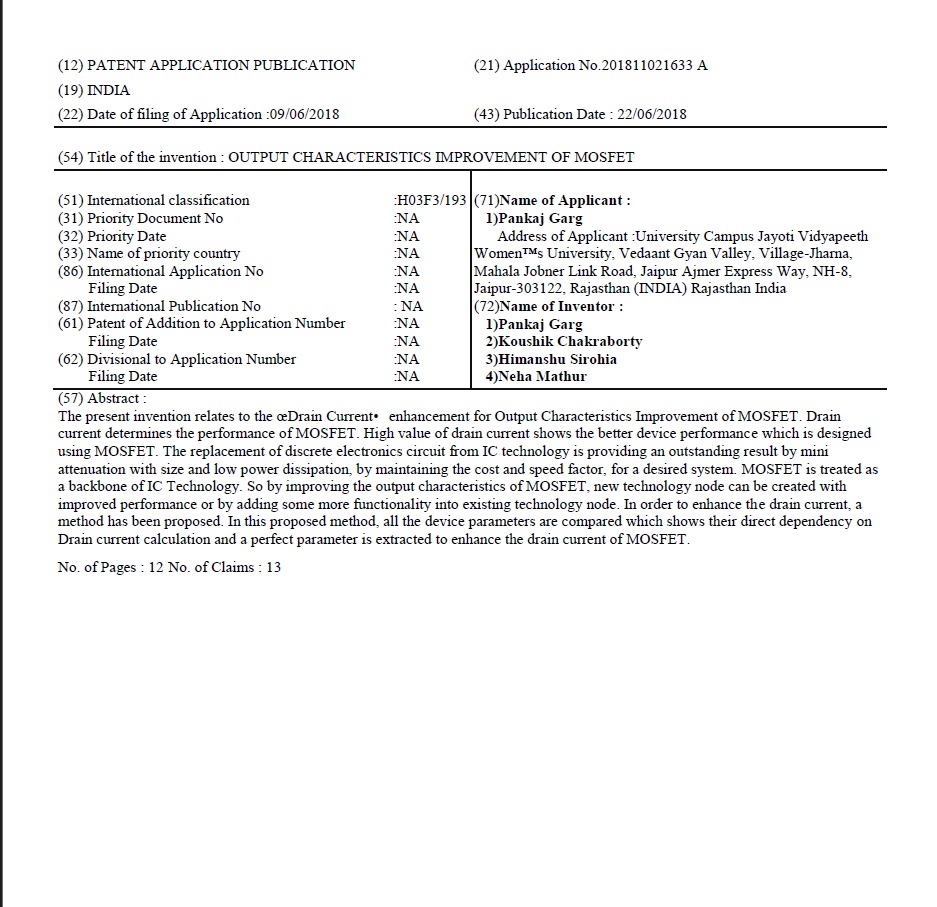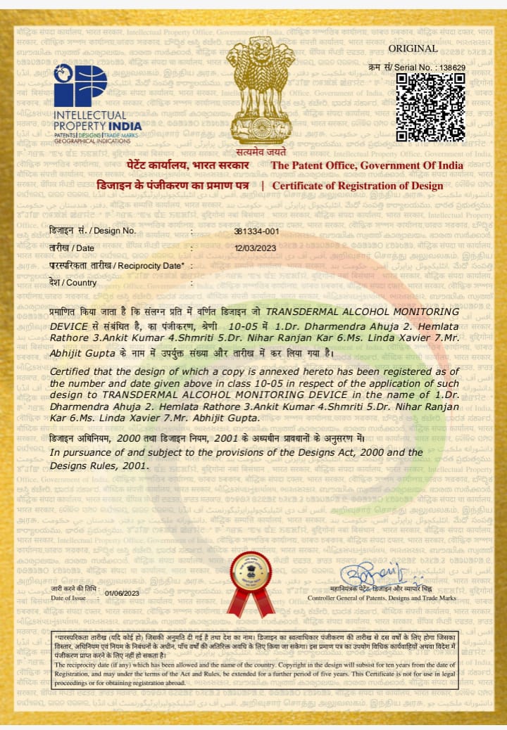 | 106 | DR. DHARMENDRA AHUJA | 381334-001 | TRANSDERMAL ALCOHOL MONITORING DEVICE | Dr Dharmendra Ahuja | 12-03-2023 | https://www.jvwu.ac.in/uploads/News/Document/0b0d300a-0ccc-4d67-9883-d8ca90dab7d1.pdf |