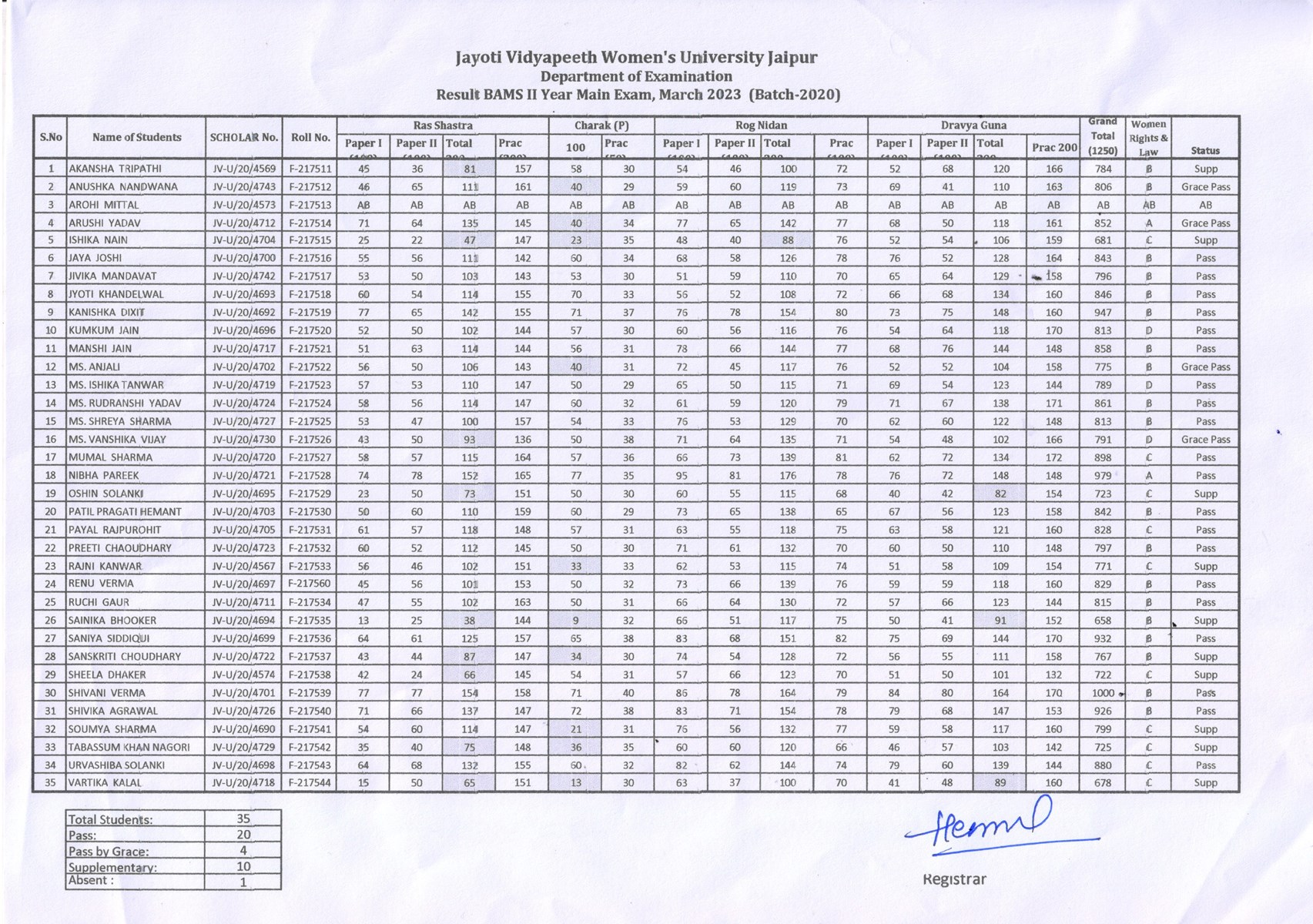 RESULT BAMS II YEAR MAIN EXAM MARCH 2023